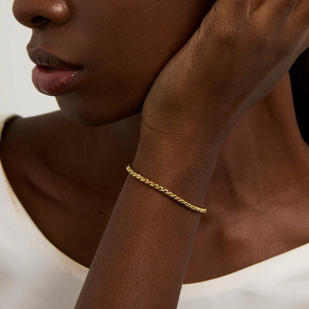 Wrap your wrist with a sized-down version of our chunky box chain, featuring cube-shaped links and adjustable lengths. Mix it with other chains, bangles, beads, a watch strap and more—it's the perfect piece for building your stack.