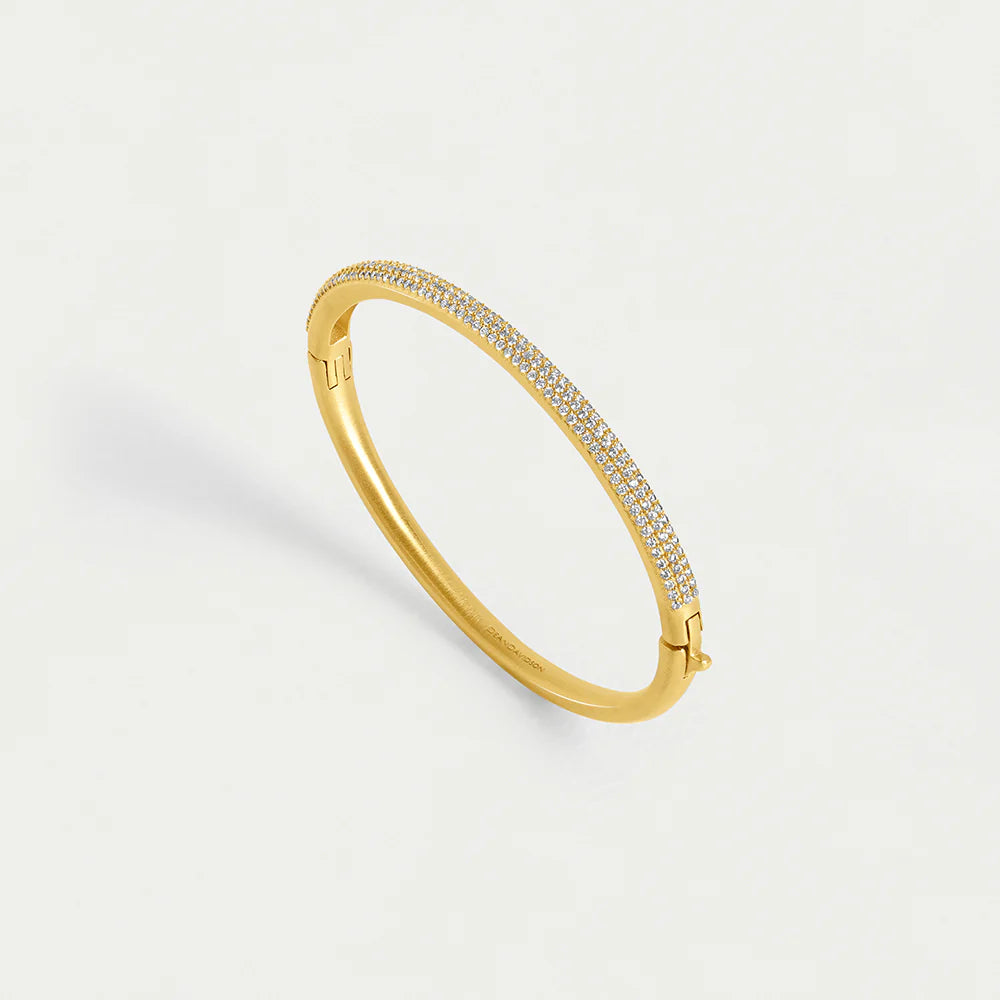 Two rows of fine pavé shine atop the Signature Pavé Hinge Bangle, which features an easy-to-wear oval silhouette and a lever hinge closure that locks into place.