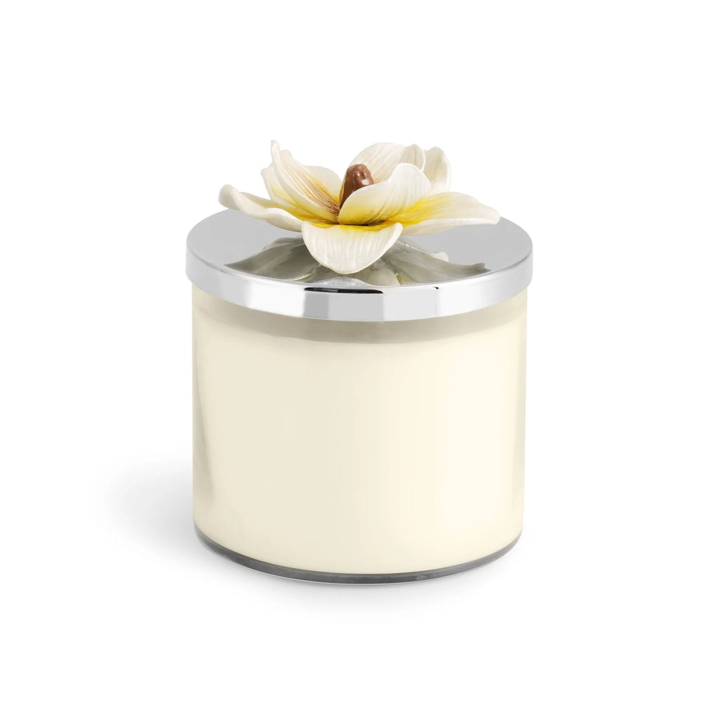 Magnolia is a gentle fragrance that summons images of plush lawns and summer days infused with the heady scent of magnificent white flower trees...robust and at the same time comforting. The base notes wave lightly with watery green scents. White magnolia with hints of ylang ylang and honey compose the center of the fragrance while distant layers of musk and spice richen the top notes.